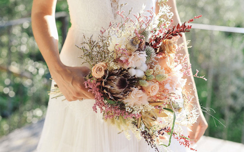 Bridal bouquet is the most important accessory of bride. In the selection of bridal bouquet, which is complementary element of  wedding ceremony and photography, you need to pay attention to the harmony of wedding dress and your wedding theme.